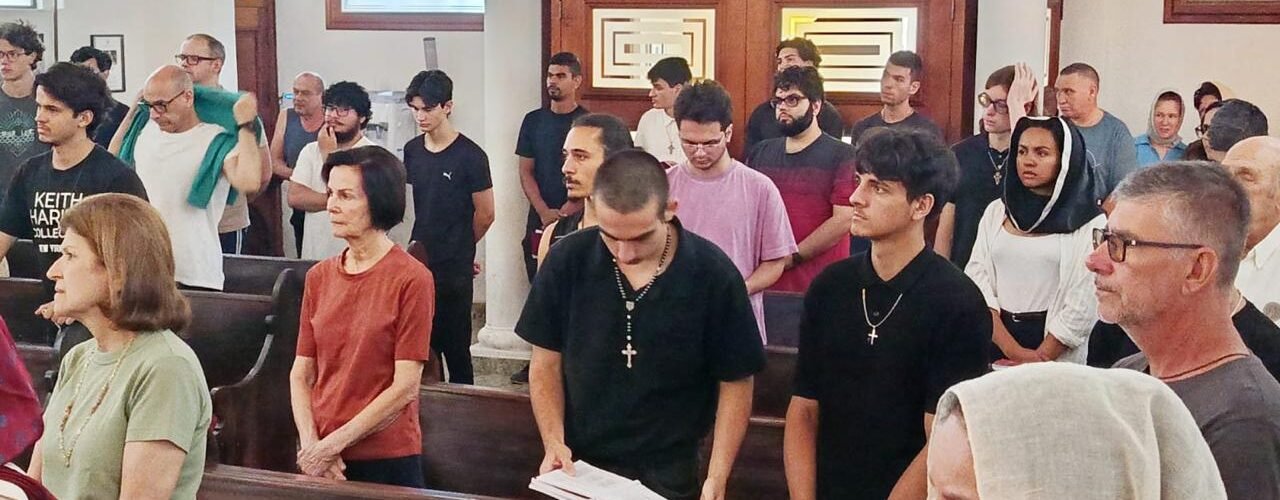 Neste domingo, nossa comunidade reuniu-se para a celebração do III Domingo do Triódion, também conhecido como Domingo do Juízo Final (ou Domingo da Carne). A partir de 8h30, o Pe. André conduziu os ofícios de preparação, seguindo-se o Orthros dominical. Às 10h, teve início a Divina Liturgia, presidida por Dom Irineo, Bispo de Tropaion, e assistida pelo Pe. André.