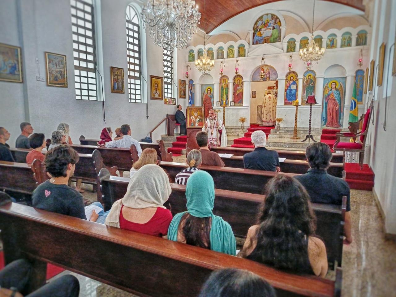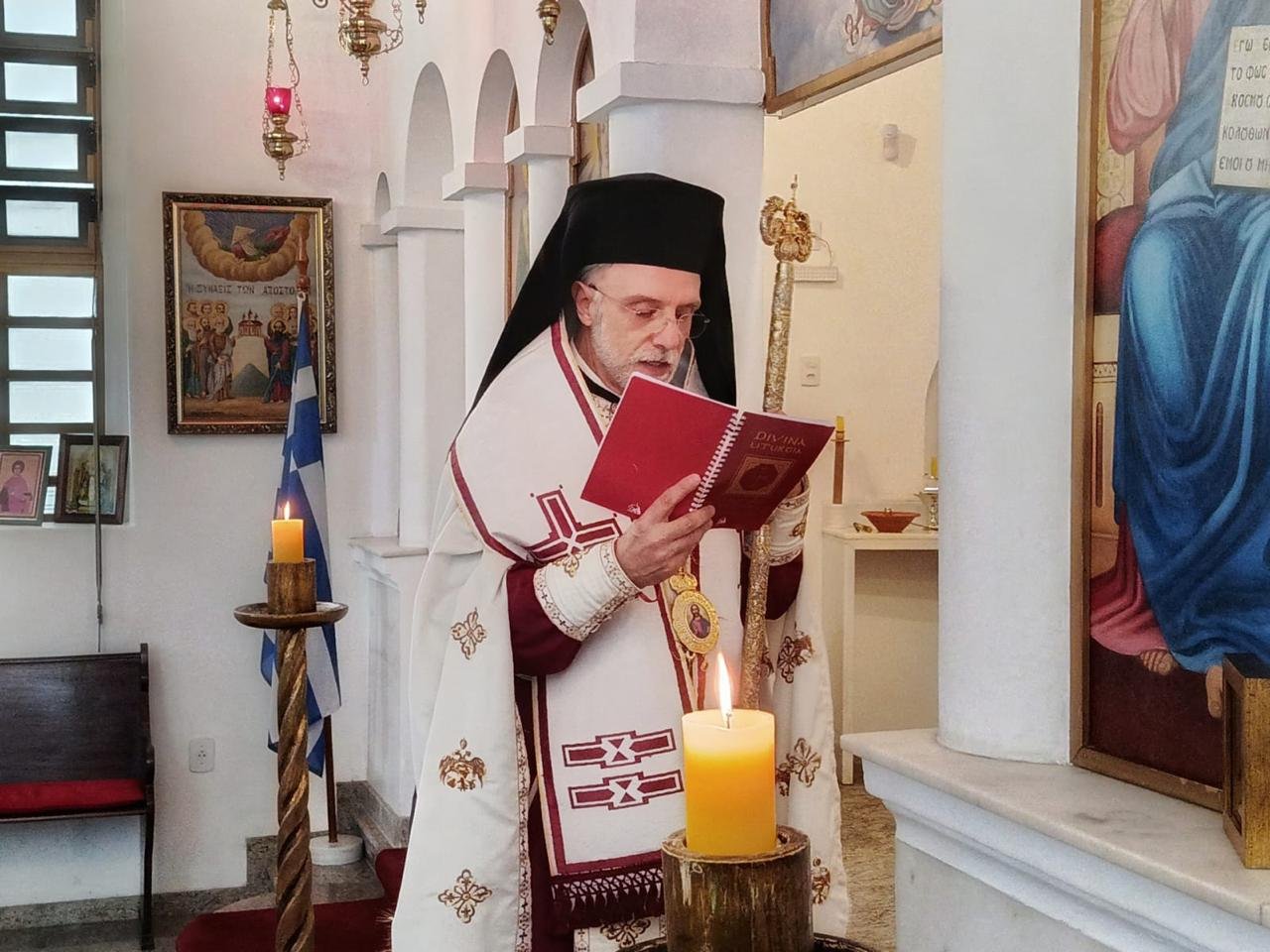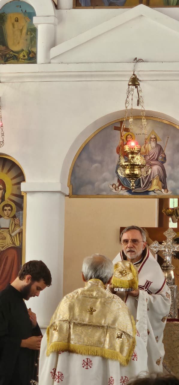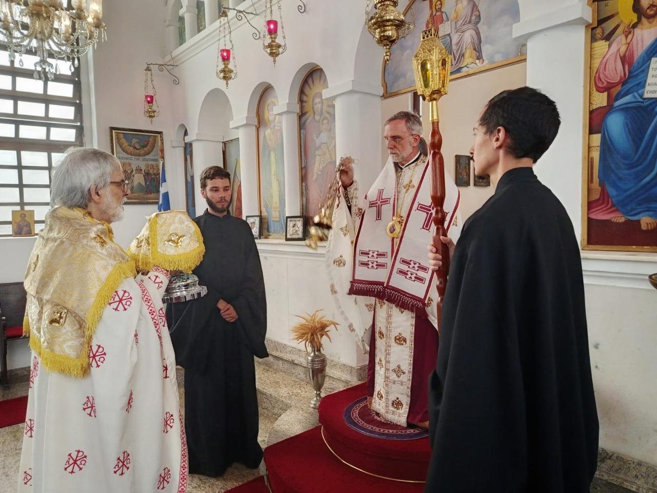 Neste domingo, nossa comunidade reuniu-se para a celebração do III Domingo do Triódion, também conhecido como Domingo do Juízo Final (ou Domingo da Carne). A partir de 8h30, o Pe. André conduziu os ofícios de preparação, seguindo-se o Orthros dominical. Às 10h, teve início a Divina Liturgia, presidida por Dom Irineo, Bispo de Tropaion, e assistida pelo Pe. André.