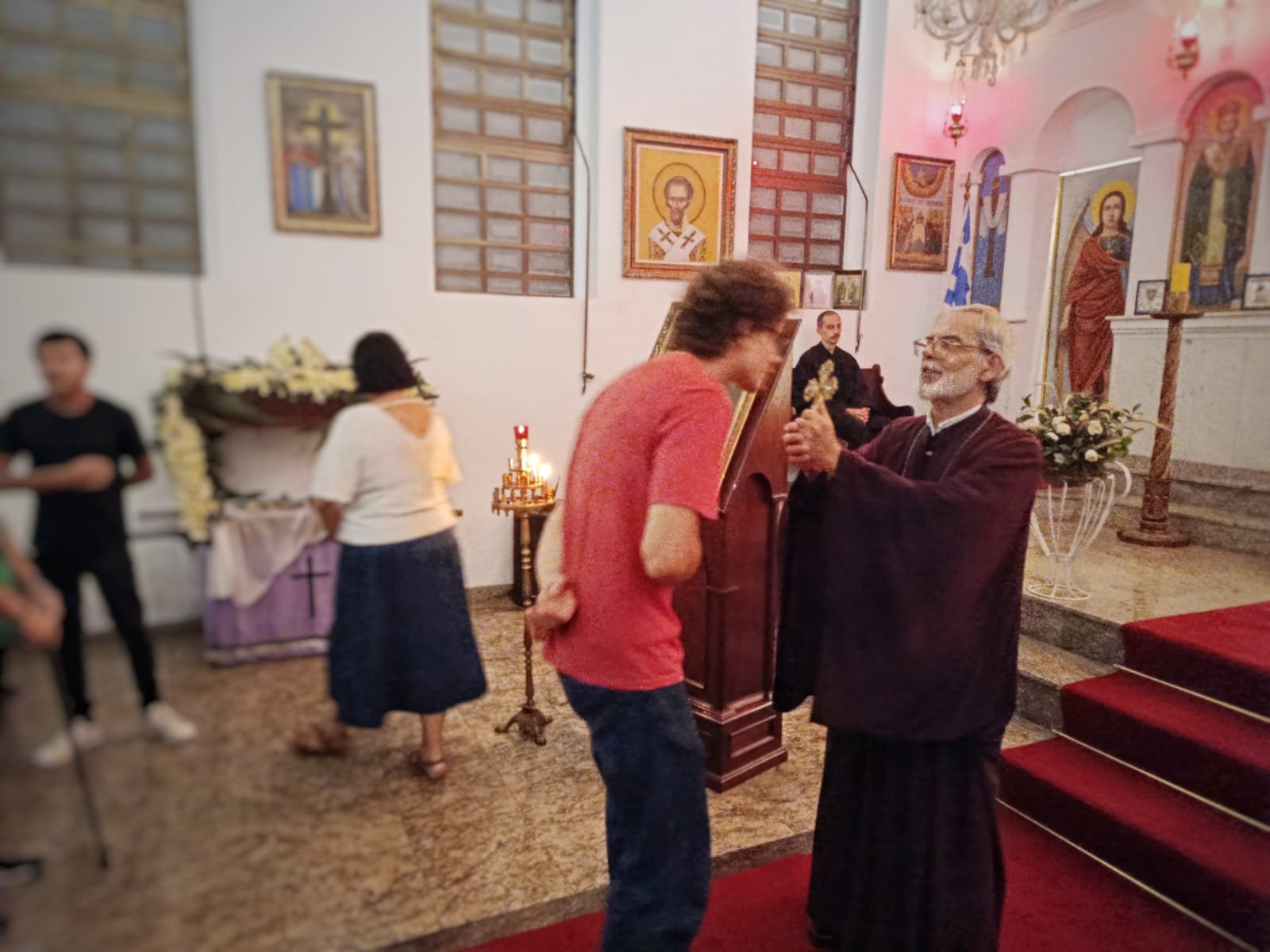 De modo muito especial, elevamos nossas preces em memória de nossa inesquecível D. Zoê Diamantara Athanasio, mãe de Renata e avó de Miguel e Lara, que por tantos anos se dedicou incansavelmente ao canto sagrado em nossa Igreja, integrando o coral de senhoras da Paróquia. D. Zoê foi também uma valorosa integrante da Filóptokhos de nossa comunidade, sempre presente no Lanche São Nicolau e em tantas iniciativas da vida paroquial, servindo com generosidade, alegria e amor à Igreja.